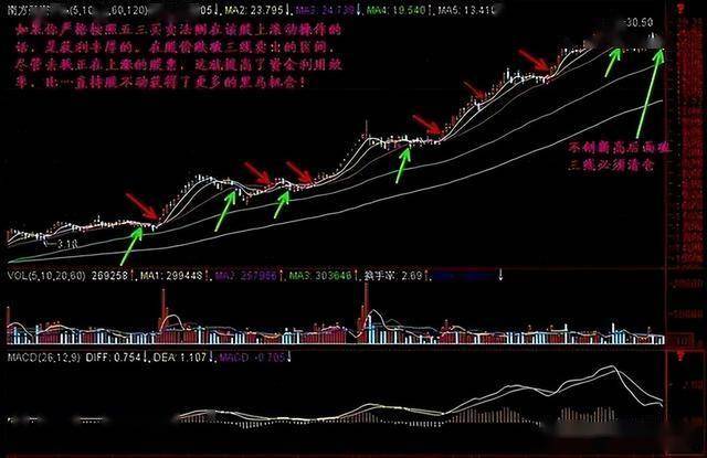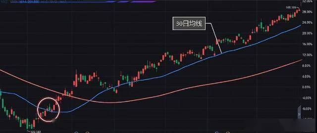 30日均线是公认的生命线,更是波段行情的启动线。股价从下向上放量突破30日均线,意味着波段上涨开启。此时要观察大均线系统:若大均线仍向下发散,就是短期反弹,适合快进快出;如果大均线走平或粘合,说明趋势反转,可重仓布局。