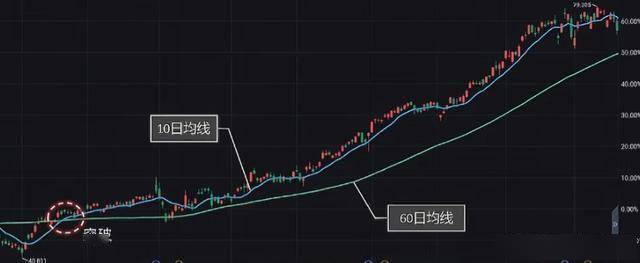 这里的决策线日均线,是大级别行情的操盘核心。股价放量突破60日均线,预示着波澜壮阔的大行情到来。后续如果股价沿着10日均线日均线就会形成强力支撑,助涨作用明显,此时持股待涨即可。