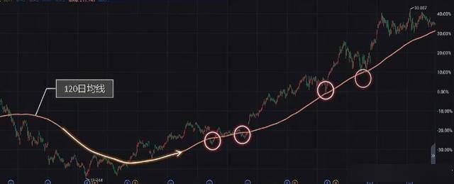 120日均线也叫半年线,它向上拐头,说明多头行情已经确立。此时每一次缩量回调,都是难得的低吸机会,可果断逢低布局;若股价远离均线、乖离率偏大,也可以高抛部分筹码,等待回调后再接回。