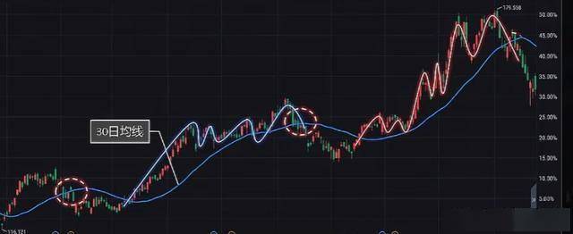 30日均线是波段行情的“命根子”,有效跌破就要果断离场。拉升初期跌破,代表第一波上涨结束,即将进入洗盘;拉升中期跌破,是第二波行情收尾的信号;拉升末期跌破,直接宣告波段行情终结,接下来就是漫长的盘头阶段。