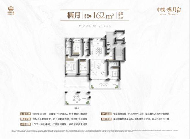 中铁·咏月台项目主推约162/164平四代洋房及约176-192平叠墅产品。